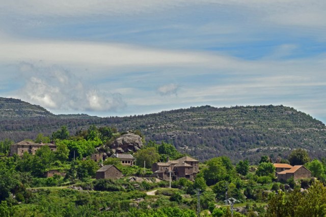 Salgo desde Used. A poco de comenzar el paseo se ve a la derecha del camino, en alto, el tejado semiderruido de un edificio. Es la ermita a visitar. No sé si hay un sendero bien dibujado para llegar, pero subiendo desde Used, yo no lo vi. En una curva a la izquierda en sentido ascendente, hay un hito de piedra que nos dirige hacia la derecha. Esa es una referencia a tener en cuenta. Al principio se adivinan rodadas de bici, pero luego, entre estos surcos, las trochas del jabalí y la vegetación, un senderista contemplativo no sabe muy bien qué hacer. Bueno, es cuestión de ir hacia la zona donde veíamos ese edificio y al final se llega. Supongo que las lluvias de esta primavera han disparado el volumen de la vegetación. De hecho, en algún momento de este último tramo del paseo el suelo está muy encharcado.